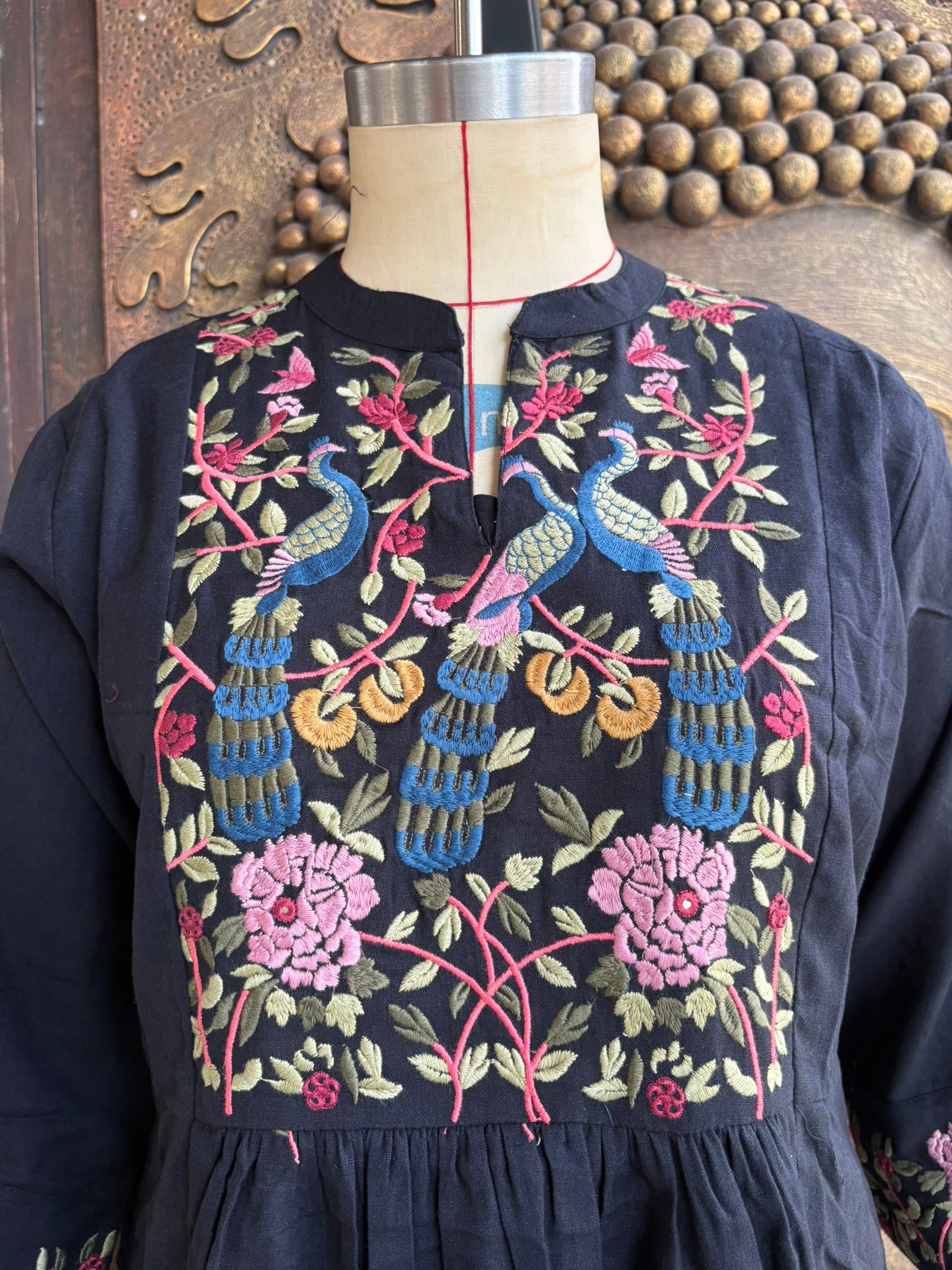 - Prints/Details: The kurta is adorned with intricate multicolor floral and peacock embroidery on the yoke and sleeves. The lower part of the kurta and pants are embellished with small, scattered floral embroidery.