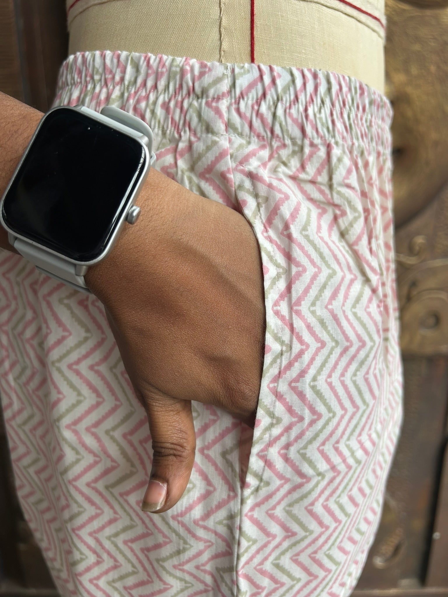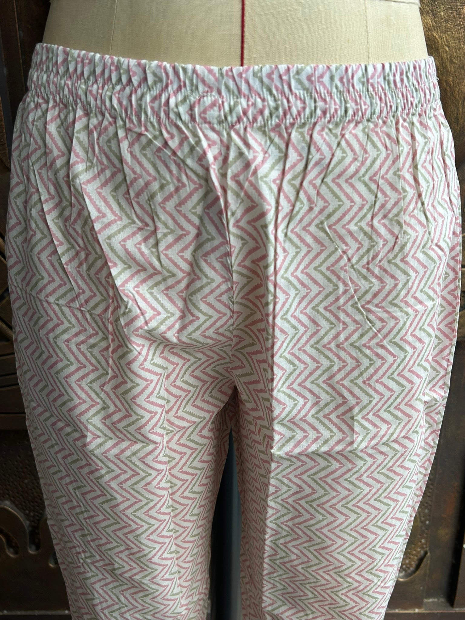 Embrace classic elegance with this charming white floral printed suit set. The delicate floral motifs and intricate detailing on the cotton kurta and matching pants, complemented by a beautiful pink ombre dupatta, create a look that is both traditional and effortlessly stylish. This ensemble is perfect for making a heartfelt statement at any daytime event or festive gathering.