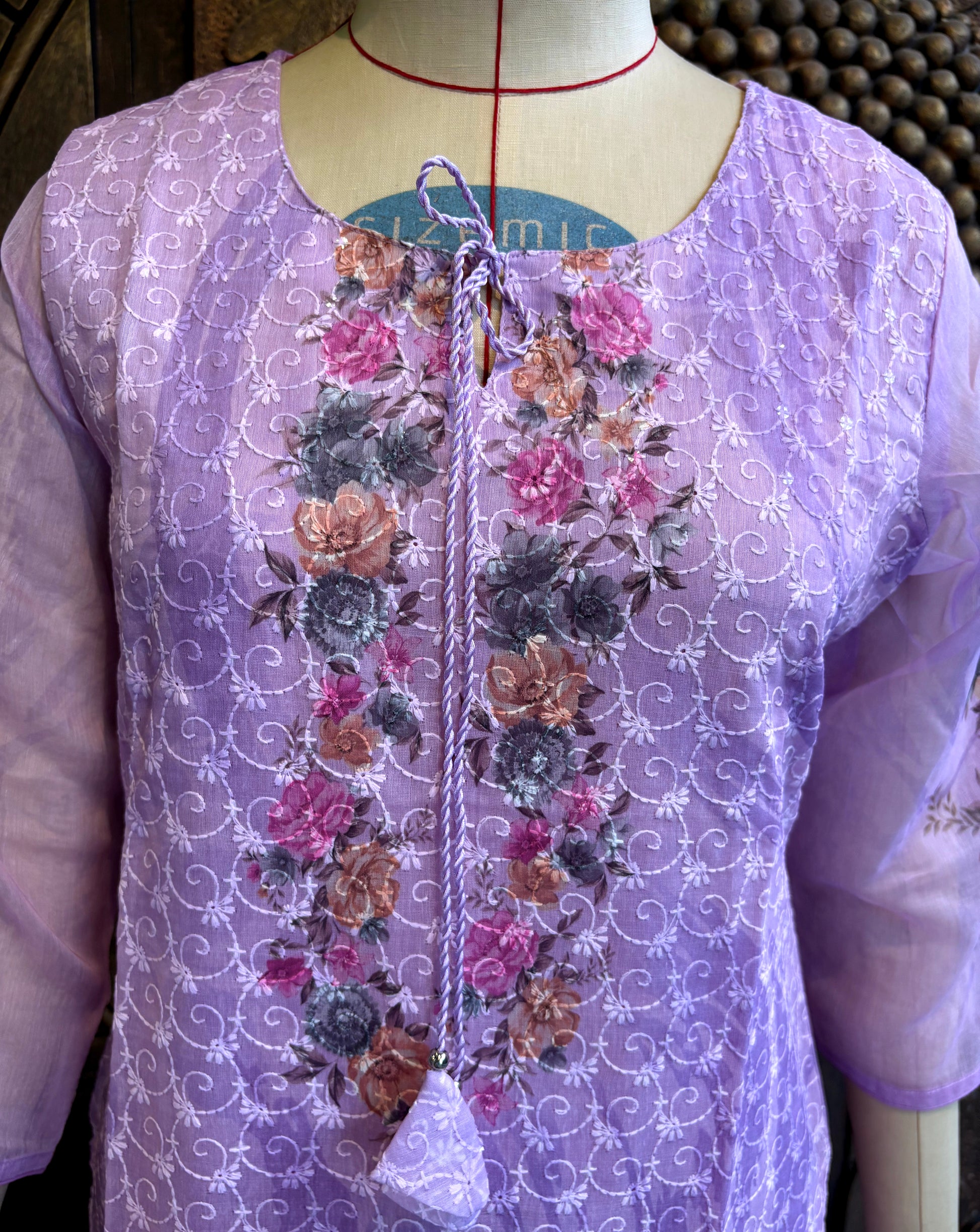 A timeless tale of elegance, this lavender suit set blooms with grace. Adorned with delicate floral prints, it's the perfect harmony of tradition and modern charm. Embrace a piece that whispers sophistication and comfort, making every moment a celebration.
