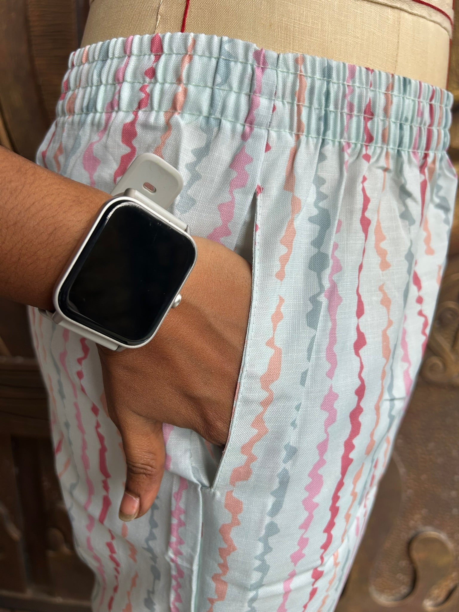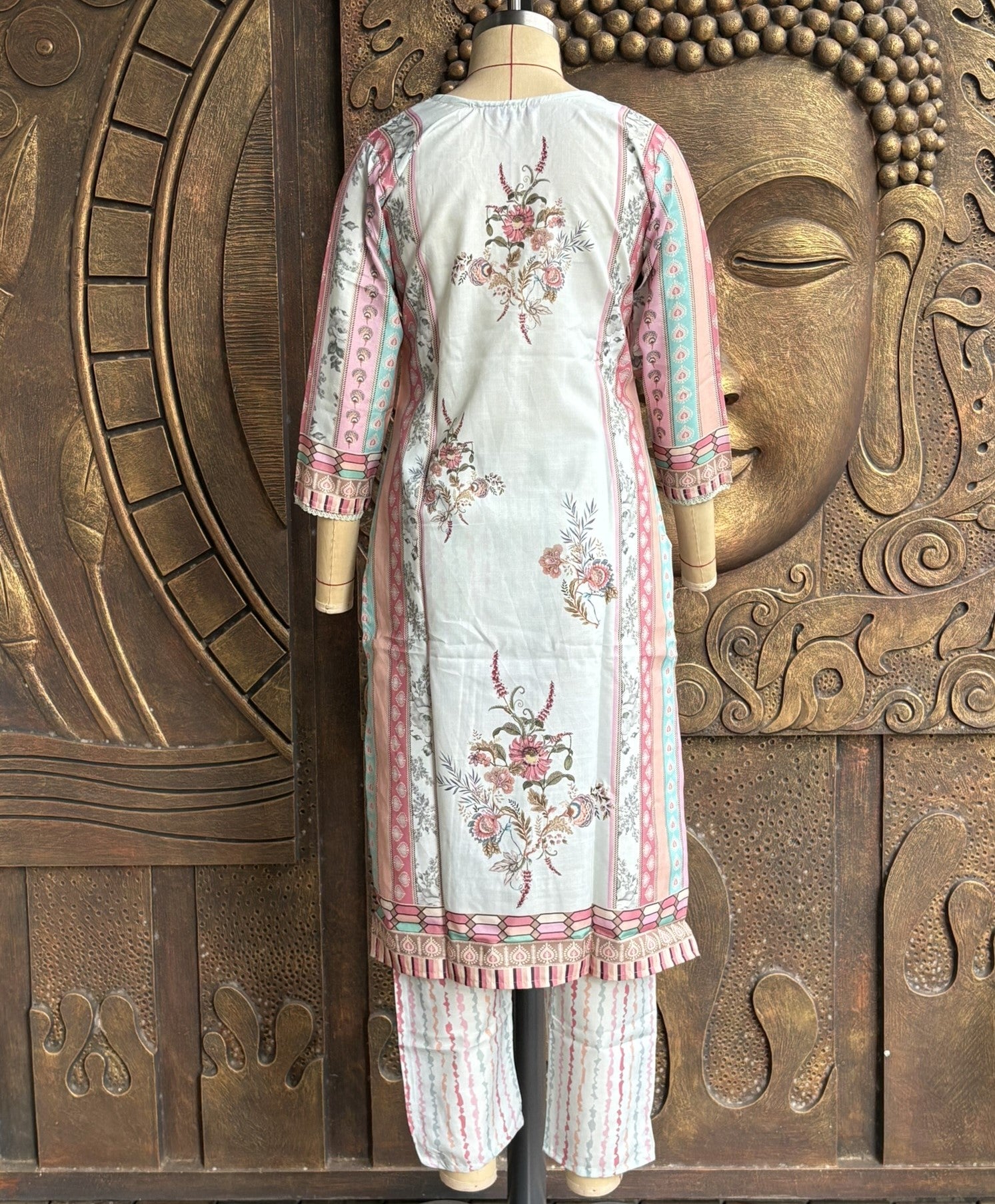 Bask in the soft hues of our Sky Blue Printed Kurta Set, a harmonious blend of delicate florals and subtle stripes for an effortlessly chic appeal. This three-piece ensemble exudes a refreshing charm, making it a delightful addition to your everyday wear. Crafted for comfort and style, this printed suit set is perfect for relaxed days and casual outings.