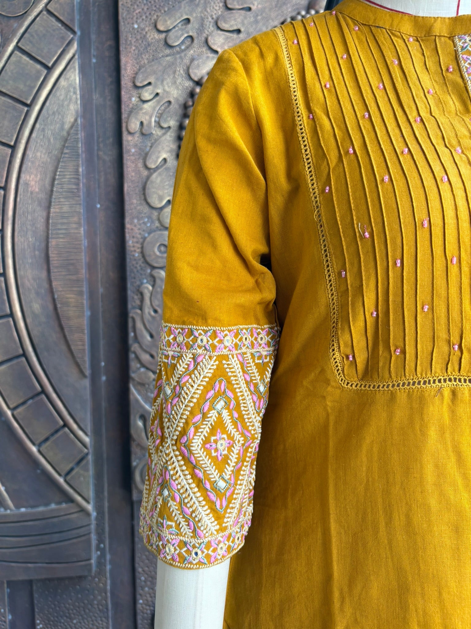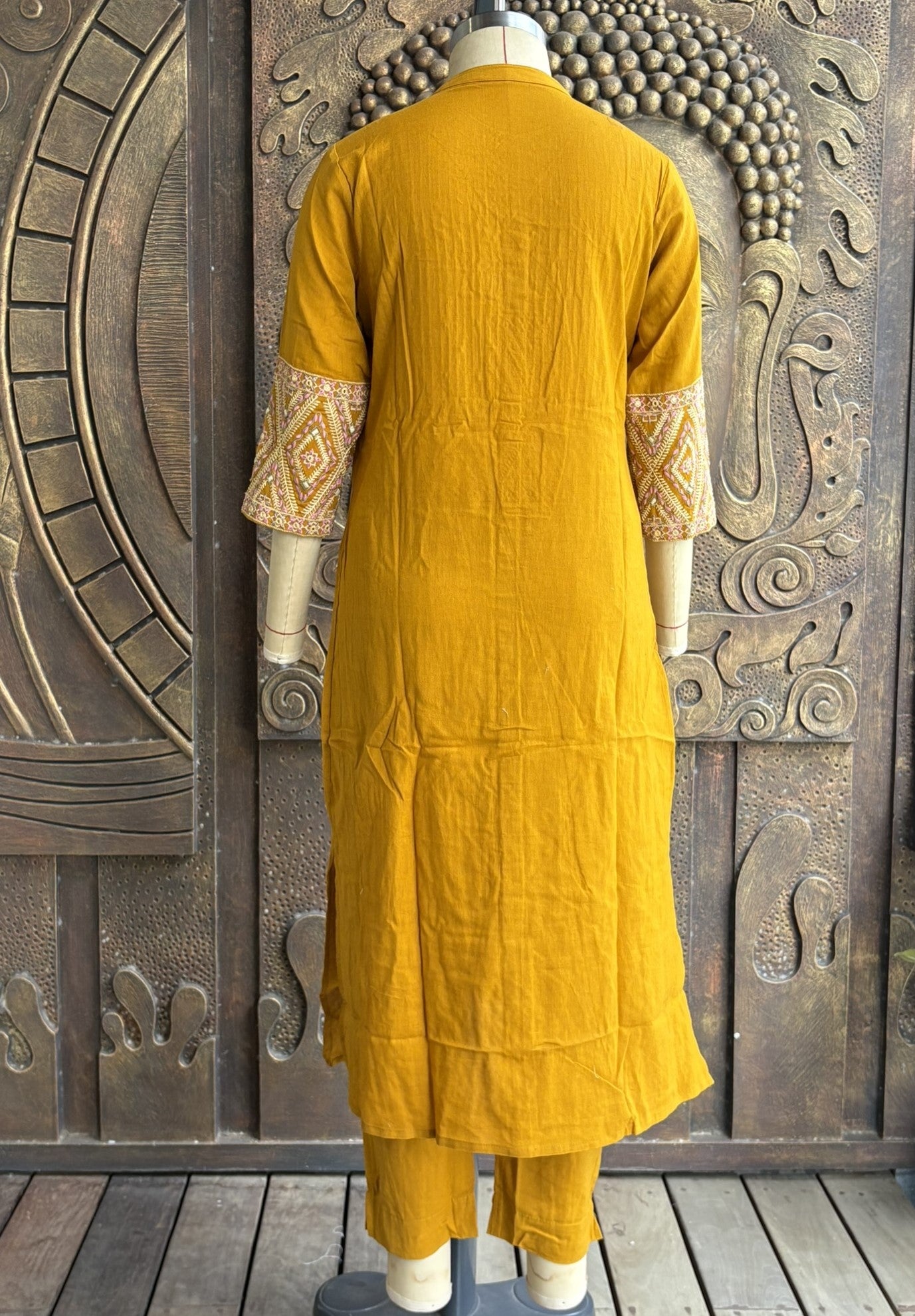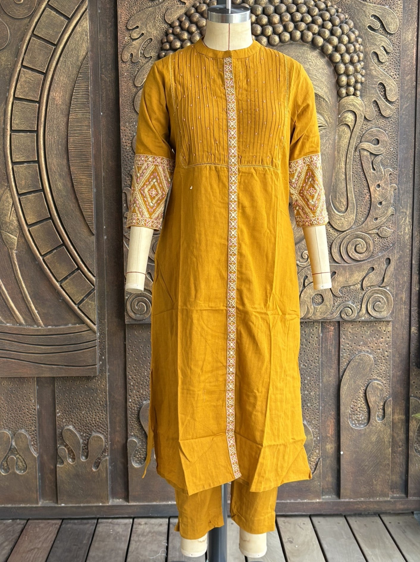 Mustard yellow suit set, ethnic wear for women, designer kurta set, embroidered suit, ready-to-wear kurta, festive outfit, Indian traditional wear, chic ethnic set, formal ethnic wear.