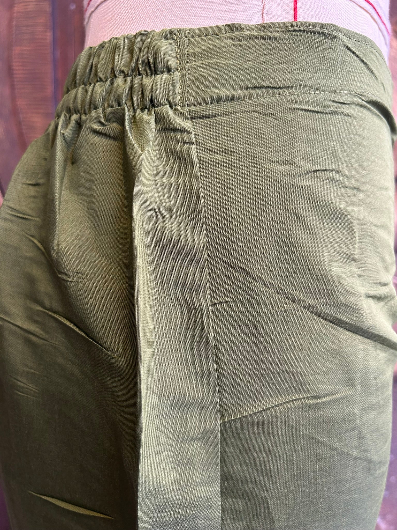 Embrace rustic charm and refined elegance with this exquisite olive green three-piece suit set. Featuring stunning white embroidery on the neckline and delicate scattered motifs, this outfit radiates timeless beauty. Perfect for a variety of occasions, this ensemble combines traditional craftsmanship with modern simplicity for a look that's effortlessly chic.