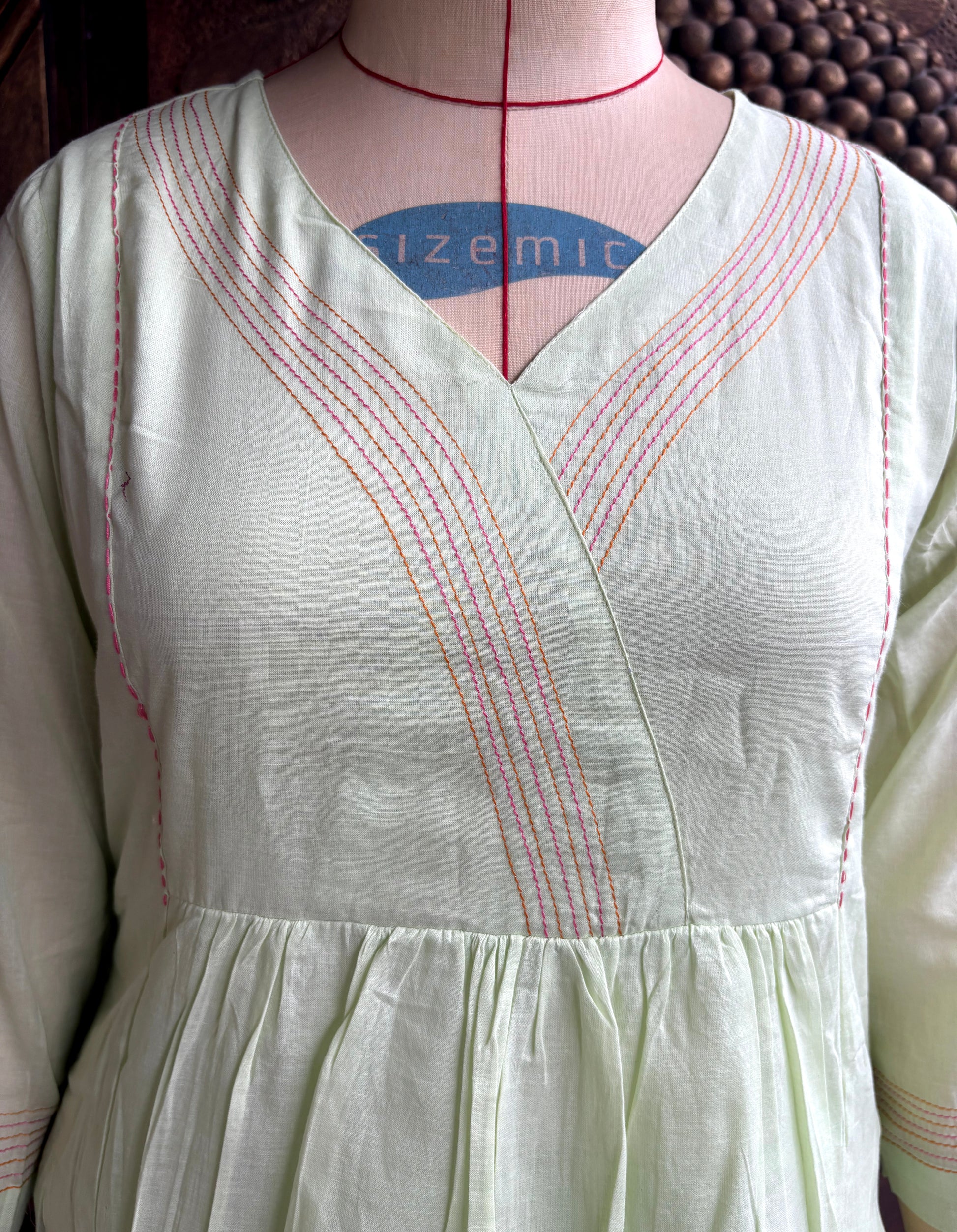 - Prints/Details: Lotus floral motifs with delicate contrast stitching on neckline and sleeves