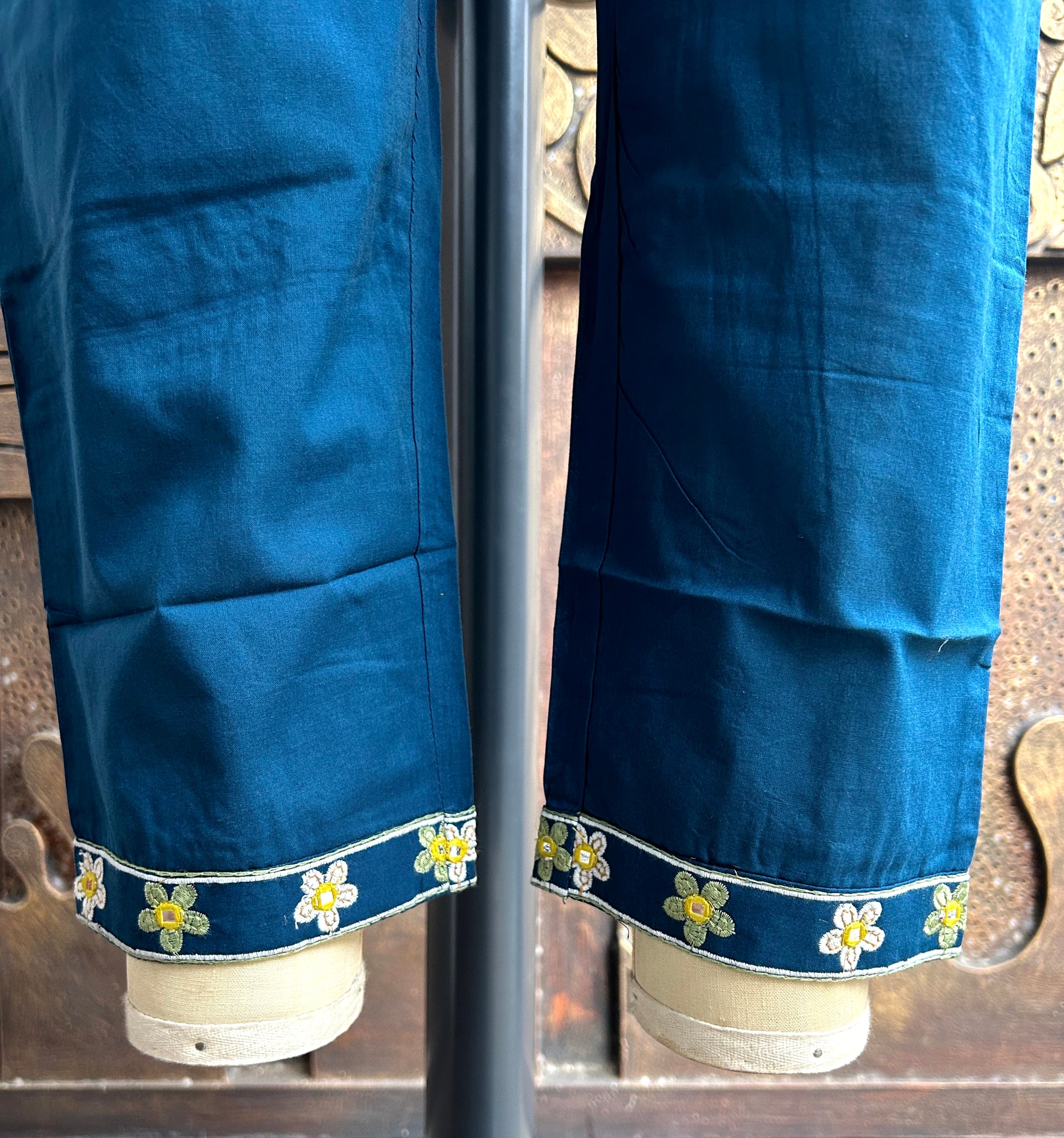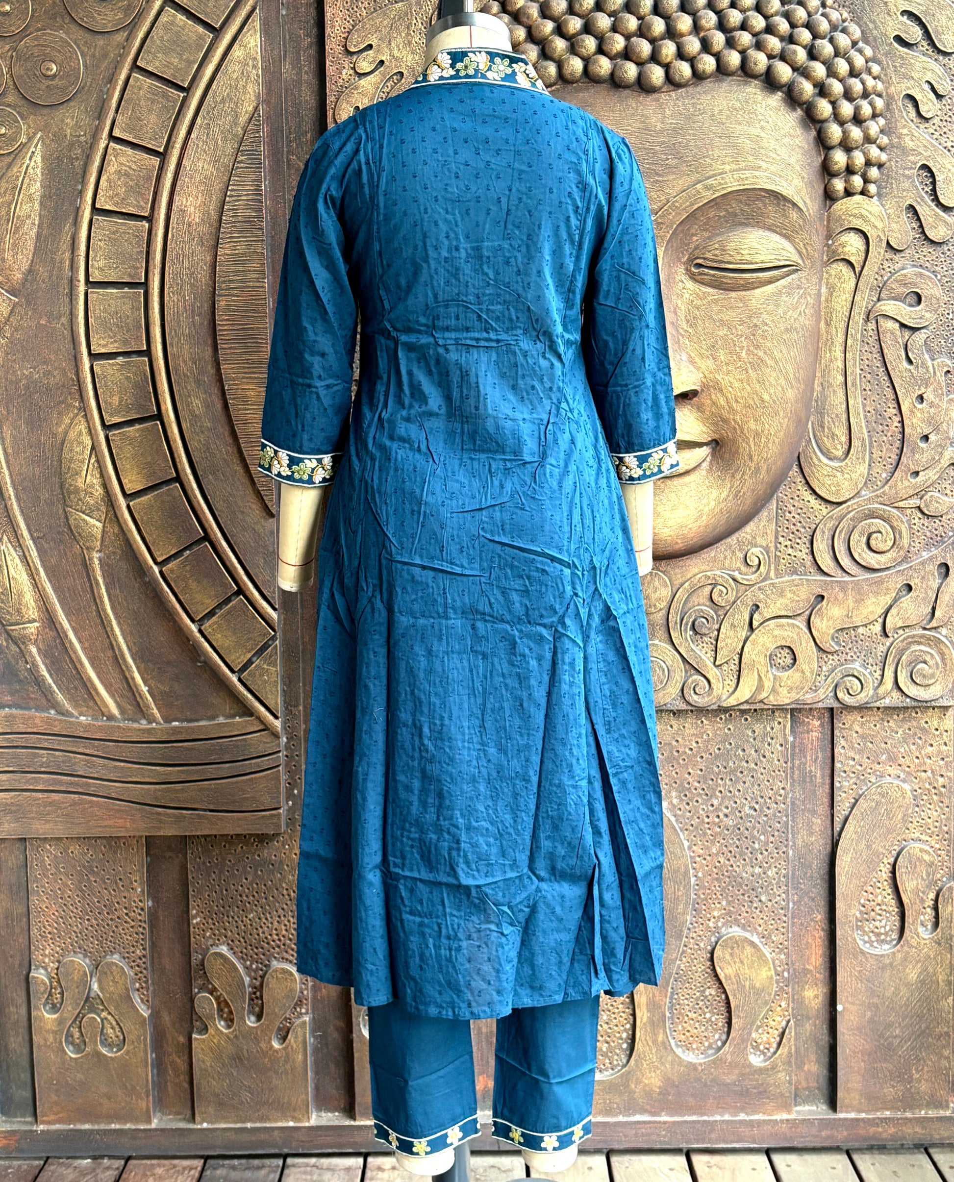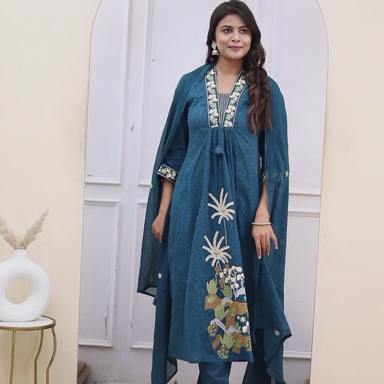 Embrace timeless elegance with our Teal Hand-Embroidered Kurta Set, a stunning blend of traditional craftsmanship and modern style. The delicate floral motifs and luxurious fabric make this outfit a must-have for your festive wardrobe. Perfect for special occasions, this three-piece set offers both comfort and grace.