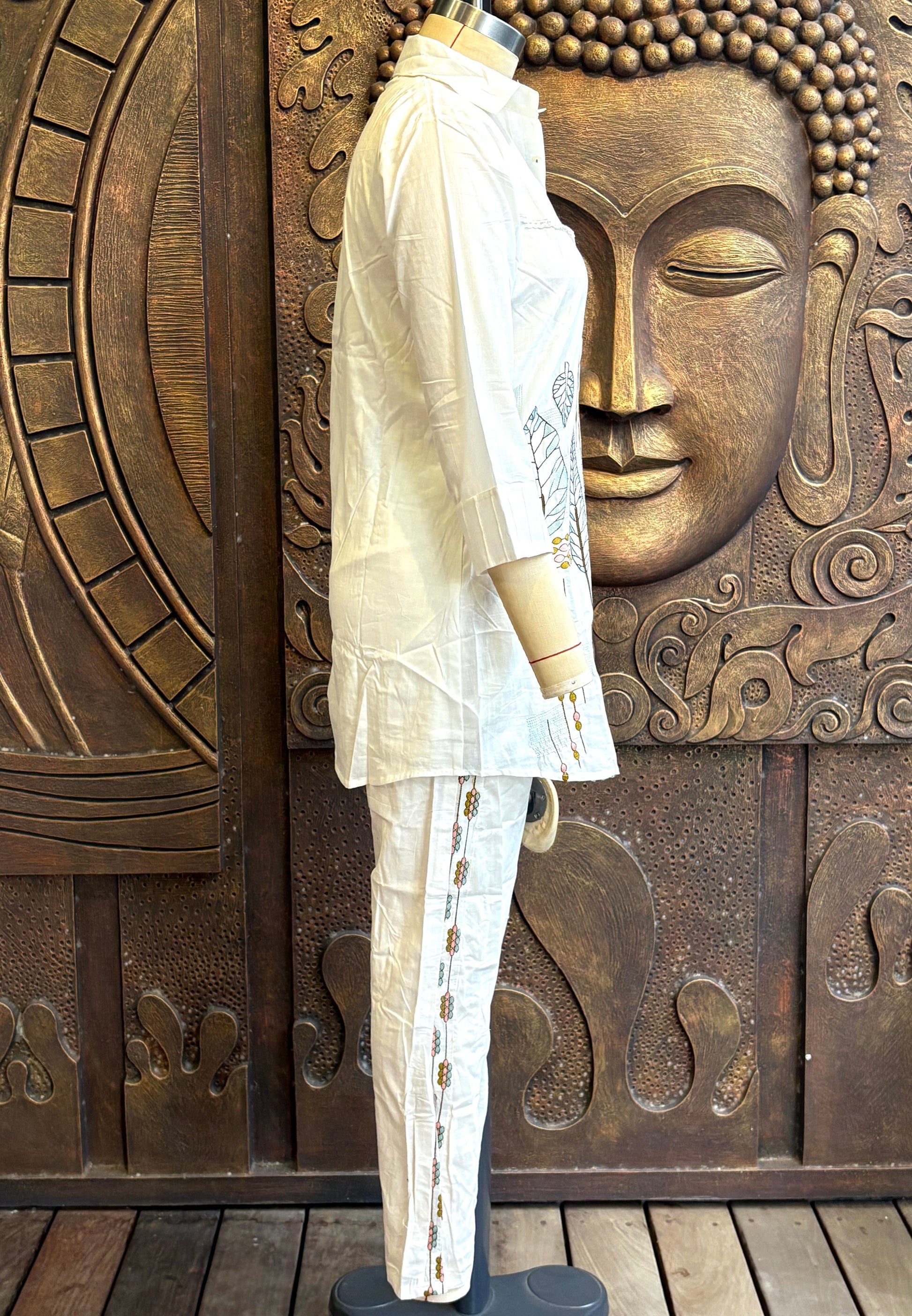 Embrace serene elegance with our pristine white embroidered co-ord set, perfect for the modern bohemian soul.